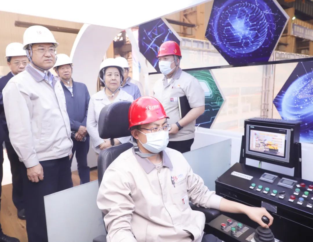 在礦山、起重機(jī)分公司,胡蘇平實(shí)地參觀(guān)了大型5G電鏟智能化遠(yuǎn)程操作室、液壓挖掘機(jī)、大型礦卡及550噸鑄造起重機(jī)裝配調(diào)試現(xiàn)場(chǎng),贊賞太重生產(chǎn)的產(chǎn)品不愧是“大國(guó)重器”,要持續(xù)提升高端裝備制造水平,全面增強(qiáng)企業(yè)活力,積蓄企業(yè)發(fā)展動(dòng)能。