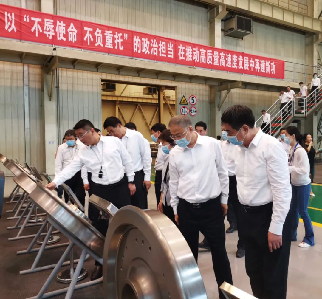 近日,太原市工業(yè)高質(zhì)量發(fā)展大會(huì)召開。會(huì)前,太原市委副書記、市長(zhǎng)張新偉及市委、市政府一行,相關(guān)企業(yè)、高校等150名參會(huì)領(lǐng)導(dǎo)前來(lái)太重,對(duì)太重高端裝備制造產(chǎn)業(yè)發(fā)展情況進(jìn)行深入了解,實(shí)地觀摩了太原重工軌道交通設(shè)備有限公司高速列車關(guān)鍵零部件國(guó)產(chǎn)化項(xiàng)目車輪生產(chǎn)線現(xiàn)場(chǎng)。集團(tuán)公司黨委書記、董事長(zhǎng)韓珍堂陪同參觀。