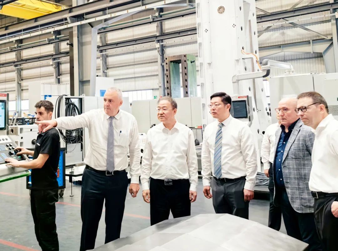 華日斯蒂公司(JUARISTI)成立于1941年,是世界一流的提供定制化鏜銑方案的研發(fā)制造廠商,專業(yè)并專注于臥式鏜銑解決方案的創(chuàng)新、研發(fā)和制造,被譽(yù)為“重型切削鏜銑床制造專家”。在華日斯蒂公司的裝配工廠,韓珍堂沿著智能生產(chǎn)線從頭走到尾,邊走邊看、邊聽邊問,在比較中思考、在交流中學(xué)習(xí)。他表示,當(dāng)前國際市場形勢嚴(yán)峻復(fù)雜,面對(duì)激烈的市場競爭,太重對(duì)內(nèi)改革、對(duì)外開放,把改革創(chuàng)新和產(chǎn)業(yè)發(fā)展擺在轉(zhuǎn)型升級(jí)的核心關(guān)鍵位置,優(yōu)化頂層設(shè)計(jì)、厚植創(chuàng)新發(fā)展、深耕智能制造,通過調(diào)整產(chǎn)業(yè)結(jié)構(gòu)、強(qiáng)化項(xiàng)目建設(shè),加快推動(dòng)戰(zhàn)略性新產(chǎn)品批量化、規(guī)?;a(chǎn),全力打造行業(yè)標(biāo)桿式的“燈塔工廠、智能工廠、黑燈工廠”。華日斯蒂公司卓越的設(shè)計(jì)理念、出眾的設(shè)備性能、精湛的加工工藝,值得太重學(xué)習(xí)借鑒。雙方都有著深厚的歷史底蘊(yùn),實(shí)力雄厚、優(yōu)勢明顯,具備廣闊的合作空間,希望今后能密切聯(lián)系,多渠道多舉措開展合作,以合力迎挑戰(zhàn)、以共識(shí)促共贏,全力打造中外制造業(yè)合作新格局。針對(duì)目前合作項(xiàng)目,韓珍堂強(qiáng)調(diào),雙方要緊密聯(lián)系、全面協(xié)同,優(yōu)化項(xiàng)目方案、加強(qiáng)統(tǒng)籌協(xié)調(diào),共同推動(dòng)合作項(xiàng)目盡快落地、早見成效,在開放合作中共享共贏。Pablo Juaristi對(duì)韓珍堂一行的到來表示熱烈歡迎,并介紹了華日斯蒂公司的產(chǎn)業(yè)布局、產(chǎn)品種類等。他說,太重是中國裝備制造業(yè)的龍頭企業(yè),能夠見證和參與太重建設(shè)具有國際一流競爭力的現(xiàn)代智能裝備制造企業(yè),深感榮幸和自豪。華日斯蒂公司將充分發(fā)揮自己的技術(shù)優(yōu)勢,不斷完善服務(wù)體系,提高服務(wù)質(zhì)量,全面保障交貨,用更大力度、更實(shí)舉措推動(dòng)雙方合作向更寬領(lǐng)域、更深層次、更高水平邁進(jìn)。