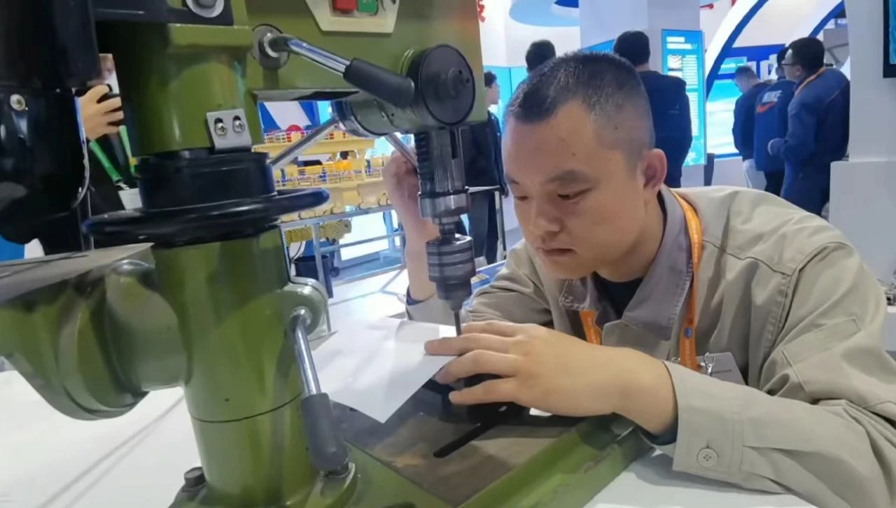 太重的產(chǎn)品模型種類繁多,太重職工也大放異彩!在三晉工匠風(fēng)采展示墻上,集團公司職工樊志勤、陳賓兩位勞模工匠的照片引人注目,生動展示著太重人的精神面貌和工匠風(fēng)采。齒傳分公司職工單璐還現(xiàn)場展示了技藝絕活,引得參觀者駐足圍觀。大家屏息凝神、目光專注,只見操作者在手機上放置了一張厚度僅有0.1毫米的A4紙,通過手動操作臺鉆在紙張上精準(zhǔn)地打出了圓孔,但手機屏幕完好無損,出神入化的技藝贏得了現(xiàn)場觀眾的陣陣掌聲。