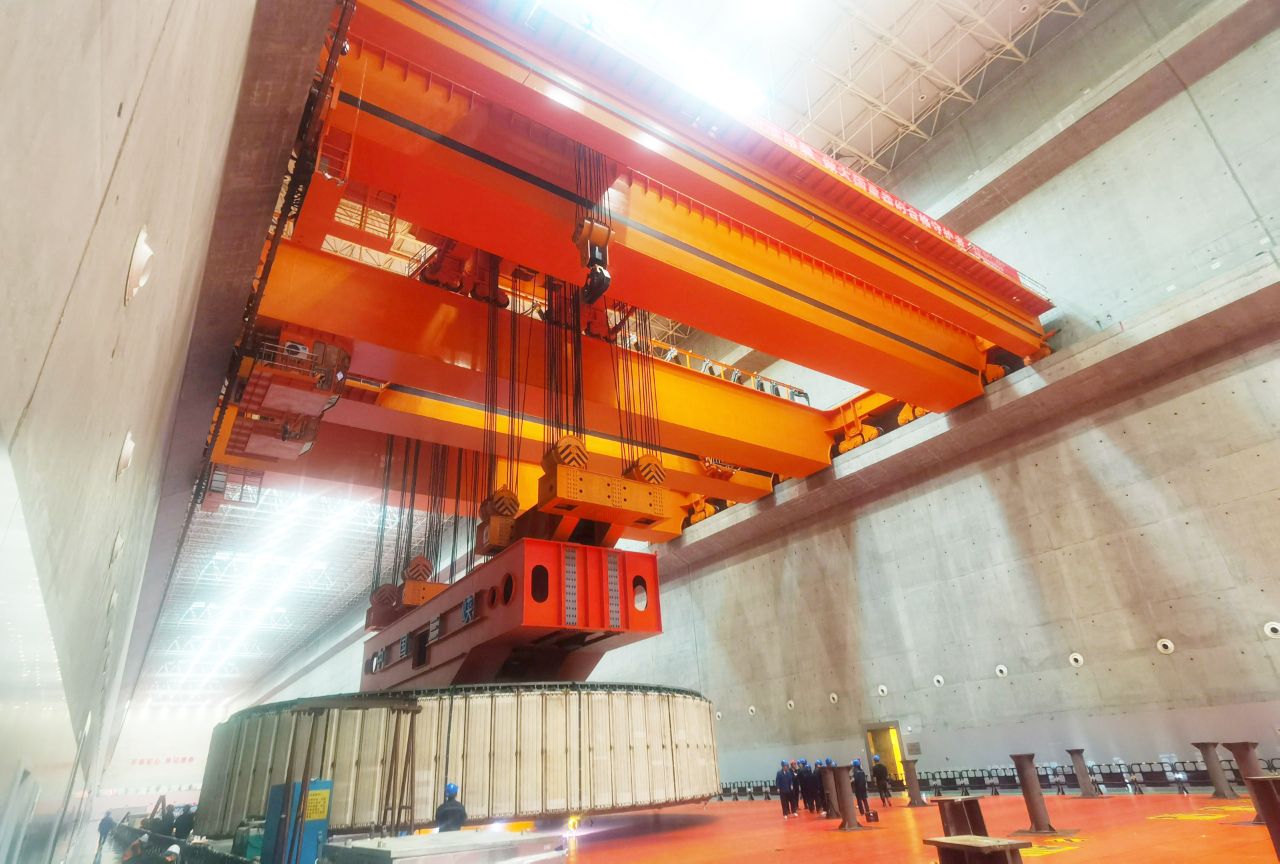 隨著指揮一聲哨響,近日,在兩臺太重“TZ”橋式起重機的合力吊裝下,國內某大型水電站2300噸轉子一次性起吊成功,圓滿完成檢修關鍵任務。這是行業(yè)內首次由高度智能化的水電站起重機完成2000噸級以上大型起吊任務,太重“智慧方案”再次成為滿足用戶需求的“金鑰匙”。