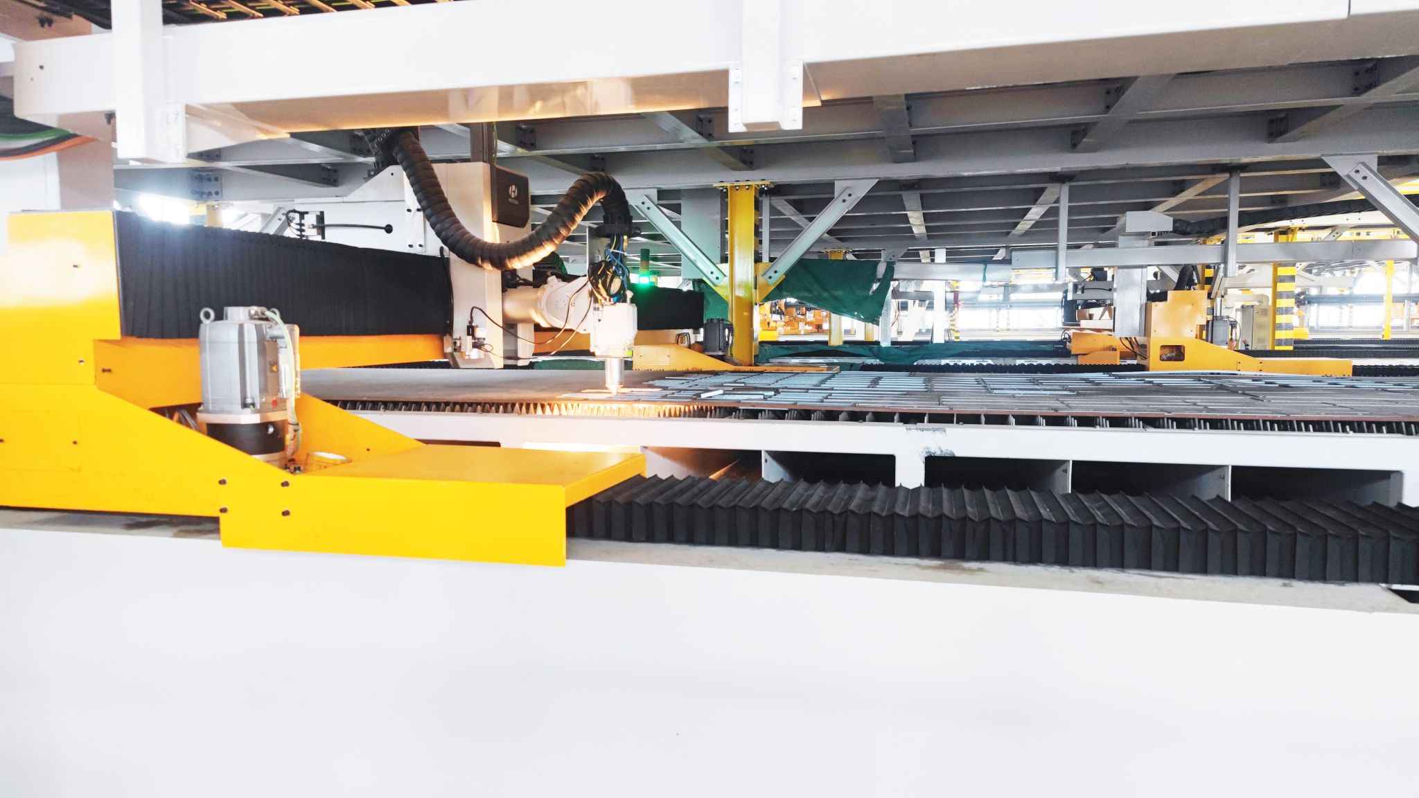 一張鋼板,經(jīng)過出入庫、拋丸、校平、上下料、對中、噴碼、輸送、切割、分揀、砂光、碼垛、物流轉(zhuǎn)運(yùn)全流程自動運(yùn)行,即可輸出一批高質(zhì)量合格零件,下料工序周期大大縮短?!斑@條實(shí)現(xiàn)全過程智能化管控的黑燈產(chǎn)線,效率提升70%,綜合材料利用率高達(dá)90%,滿產(chǎn)下每年可節(jié)約成本4000萬元以上?!敝悄芗庸づ渌椭行目偨?jīng)理史亞杰說。
