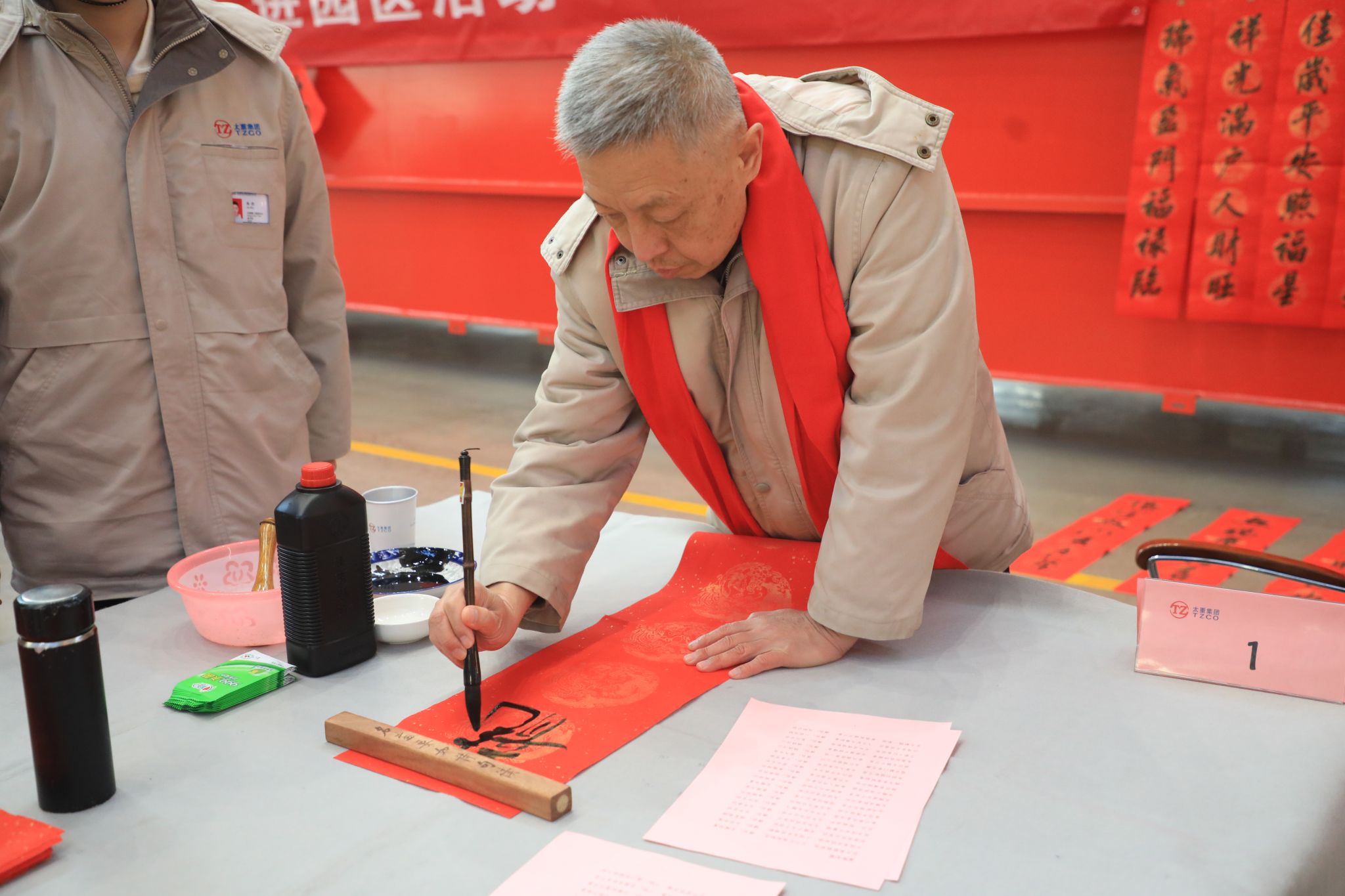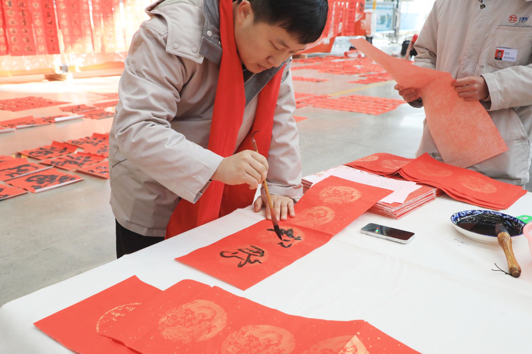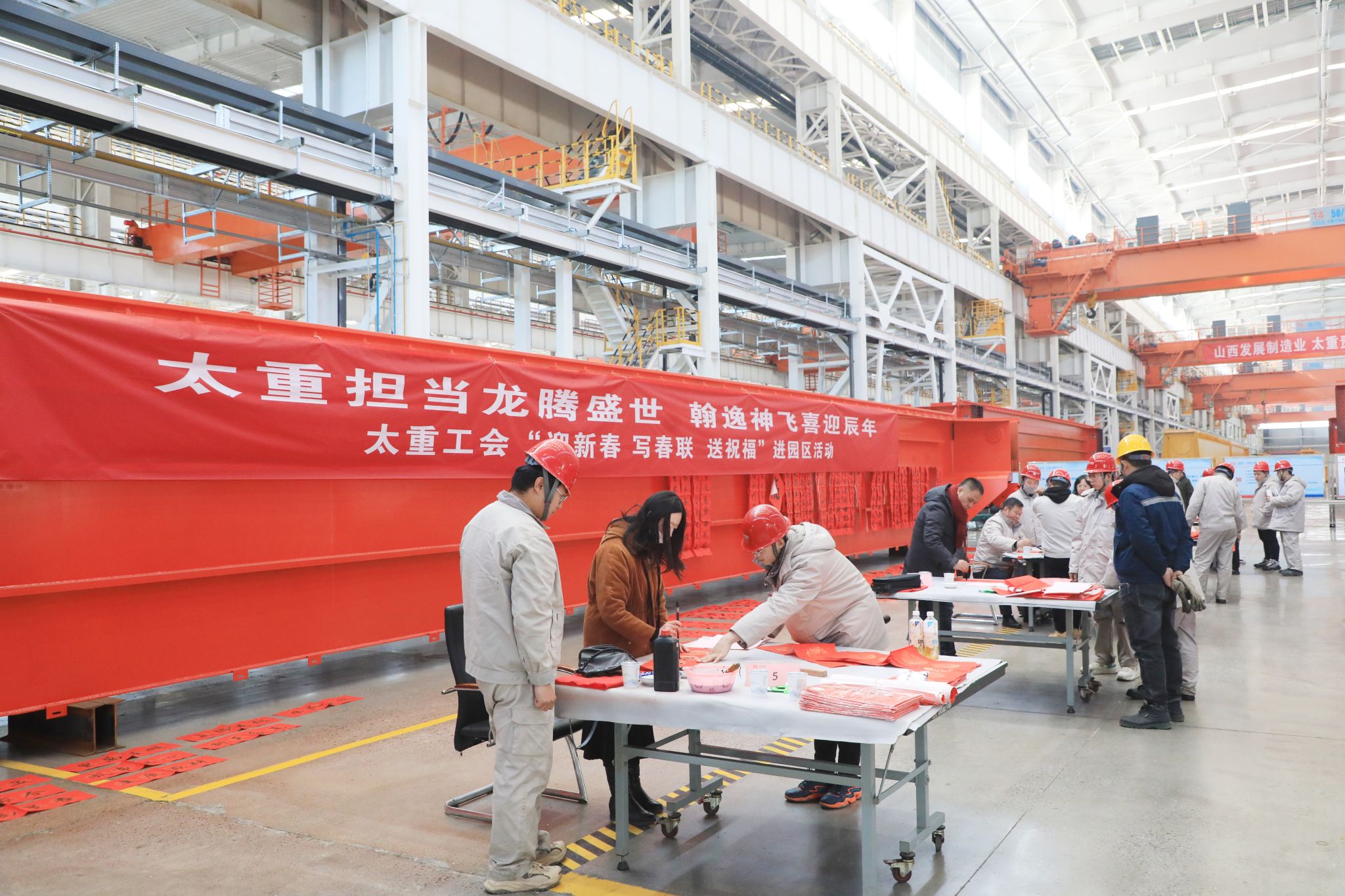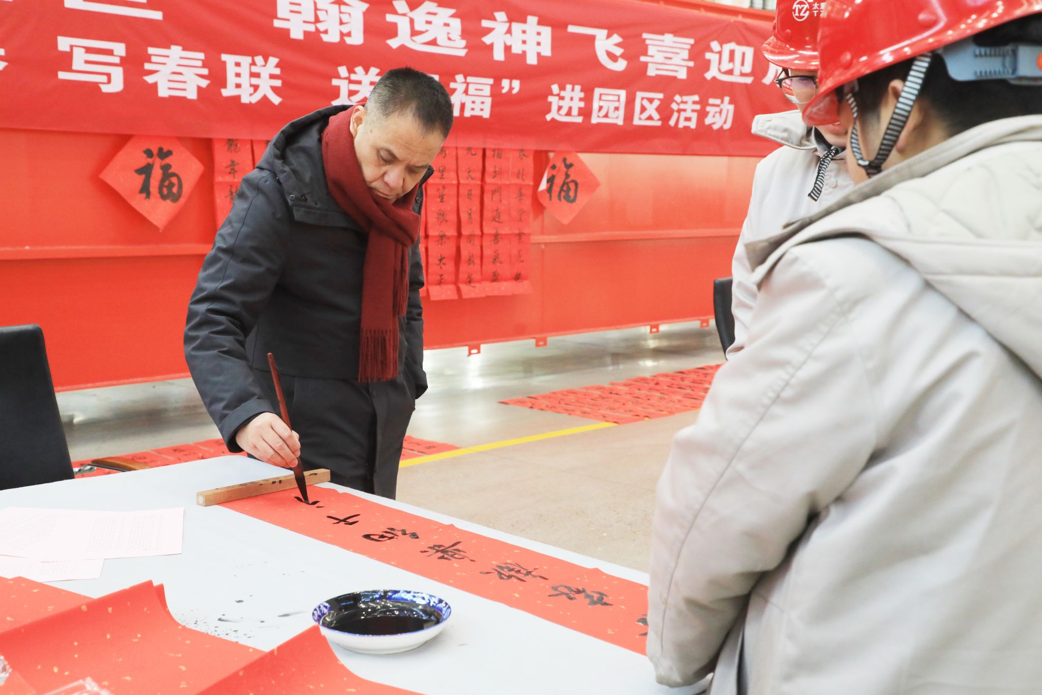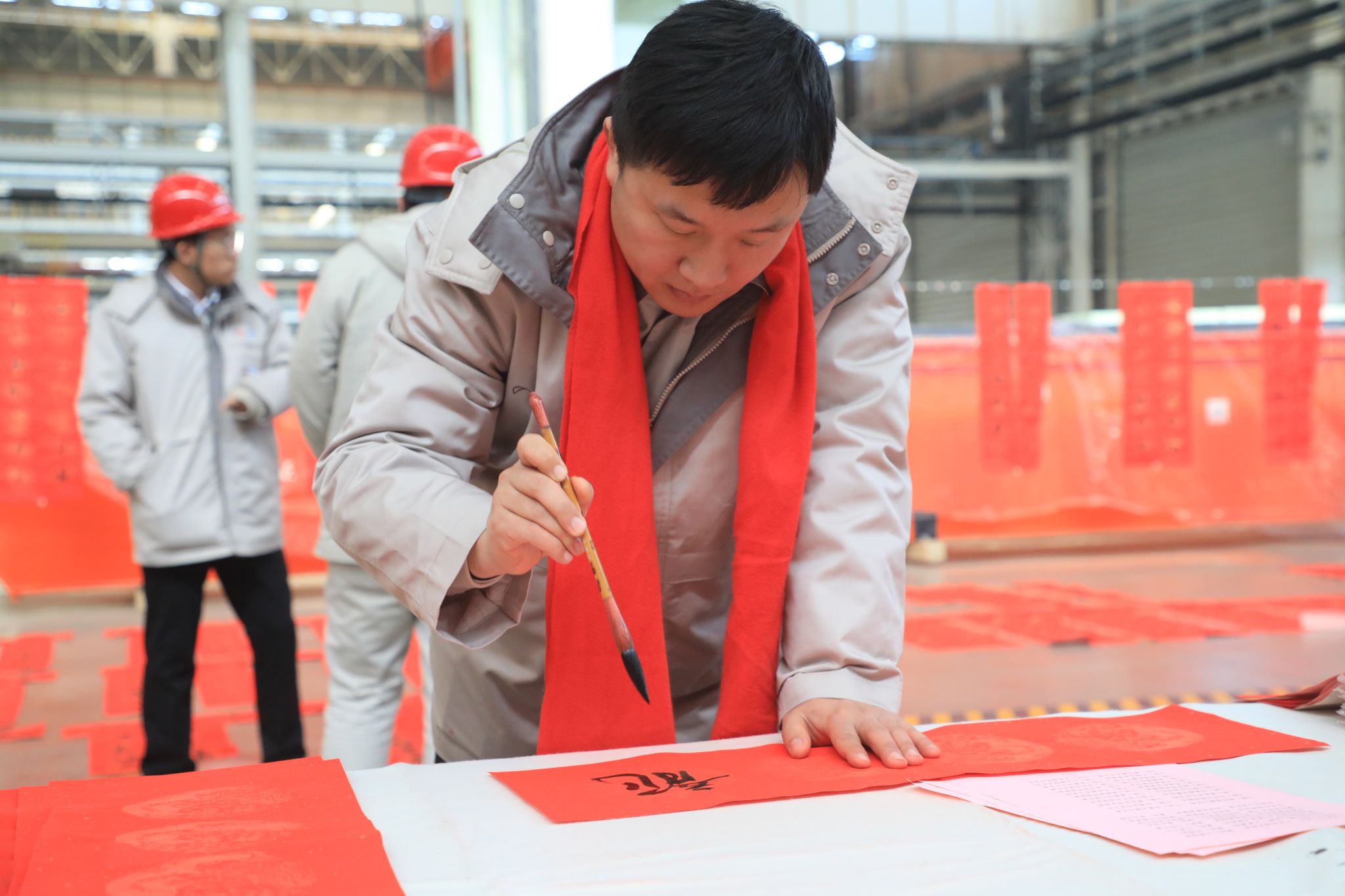 為豐富職工文化生活、喜迎龍年新春,1月23日,公司工會(huì)舉辦“迎新春 寫春聯(lián) 送祝福”進(jìn)園區(qū)活動(dòng),在太重智能高端裝備產(chǎn)業(yè)園區(qū)加工裝配聯(lián)合廠房,來自省內(nèi)的知名書法家和公司書法愛好者們齊聚一堂,為各子分公司職工義務(wù)書寫春聯(lián),以這種喜慶的形式向廣大干部職工送上春節(jié)的祝福。集團(tuán)公司黨委專職副書記、副董事長、工會(huì)主席張新偉參加活動(dòng)。