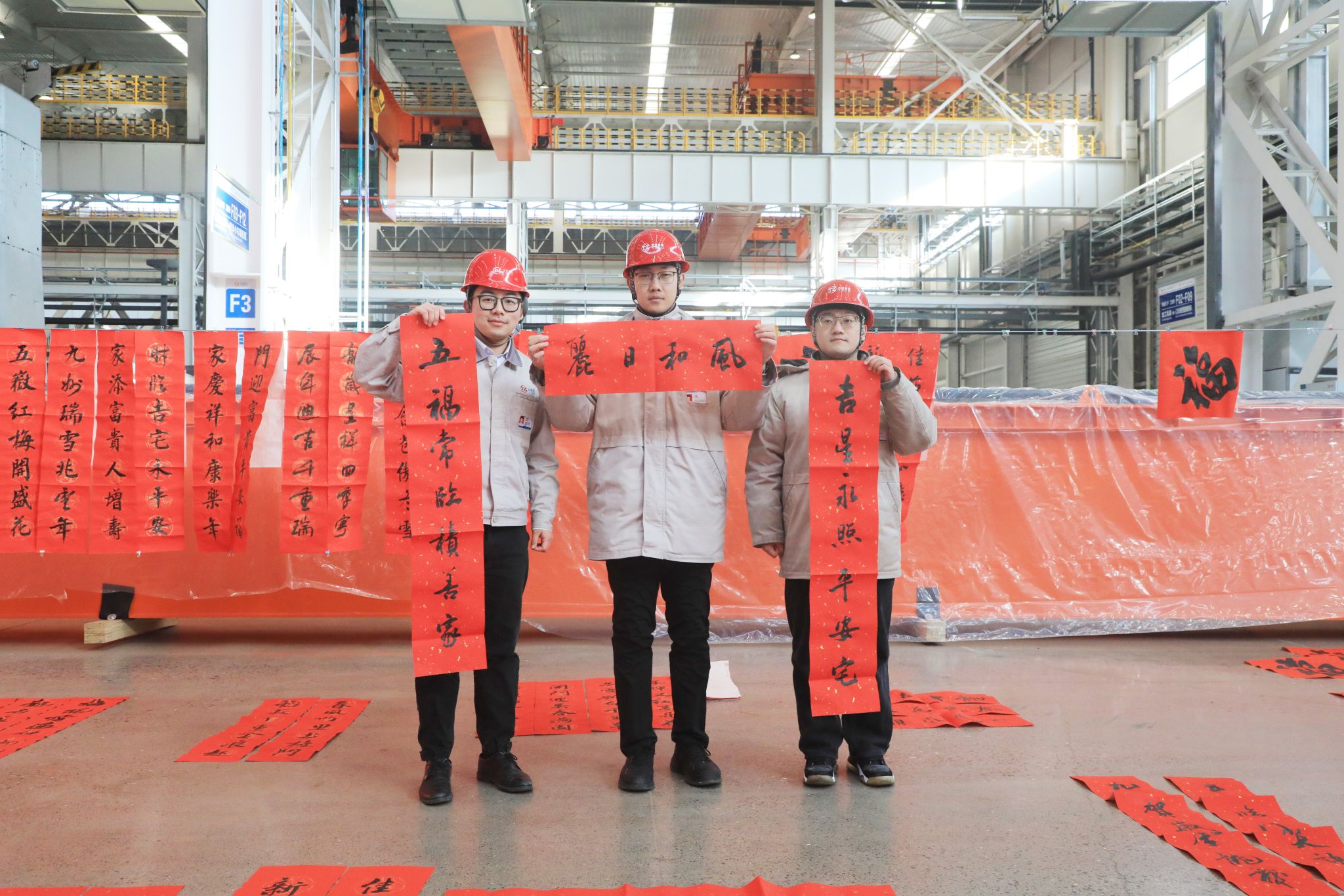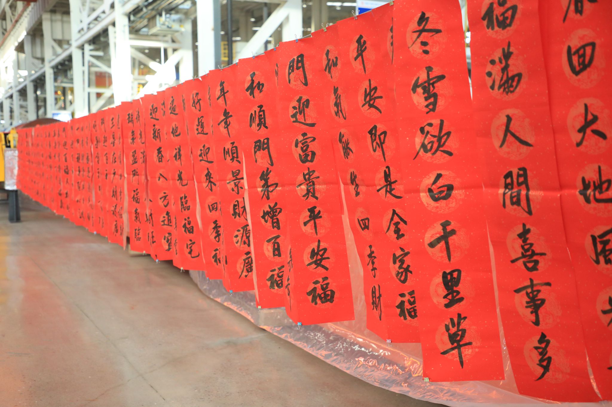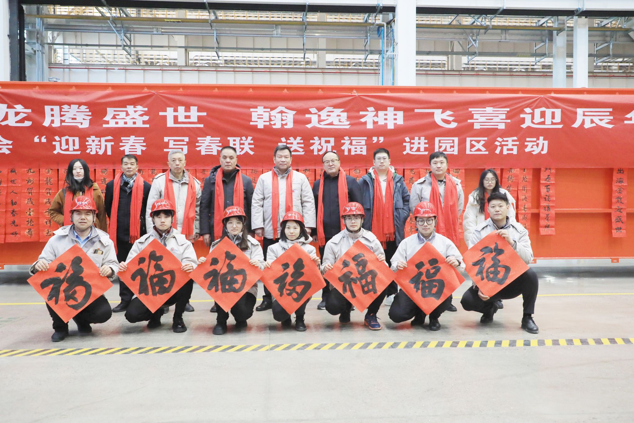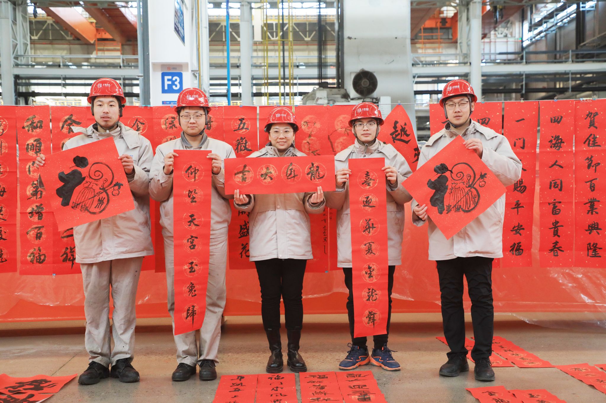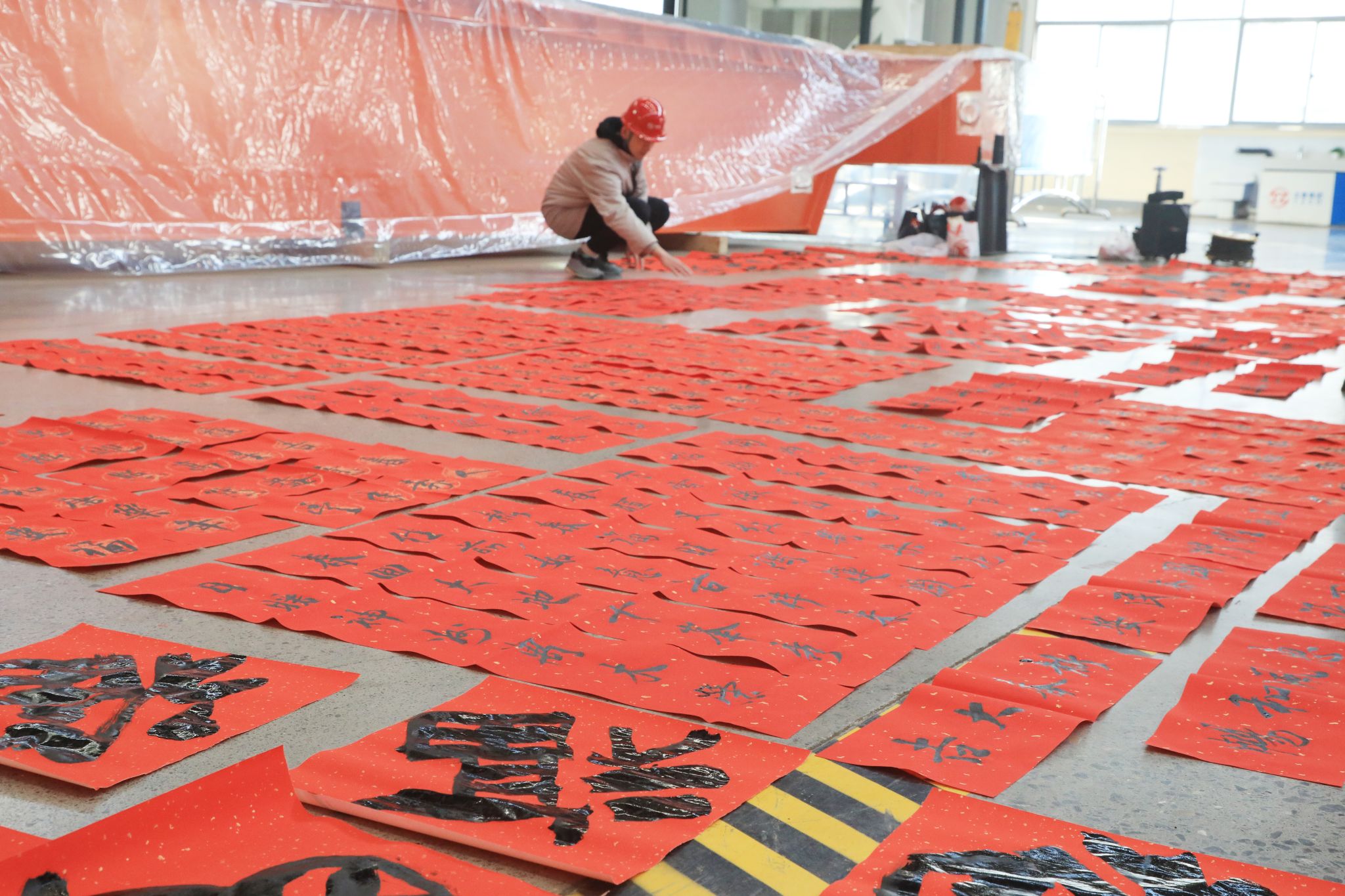 為豐富職工文化生活、喜迎龍年新春,1月23日,公司工會(huì)舉辦“迎新春 寫春聯(lián) 送祝福”進(jìn)園區(qū)活動(dòng),在太重智能高端裝備產(chǎn)業(yè)園區(qū)加工裝配聯(lián)合廠房,來自省內(nèi)的知名書法家和公司書法愛好者們齊聚一堂,為各子分公司職工義務(wù)書寫春聯(lián),以這種喜慶的形式向廣大干部職工送上春節(jié)的祝福。集團(tuán)公司黨委專職副書記、副董事長、工會(huì)主席張新偉參加活動(dòng)。