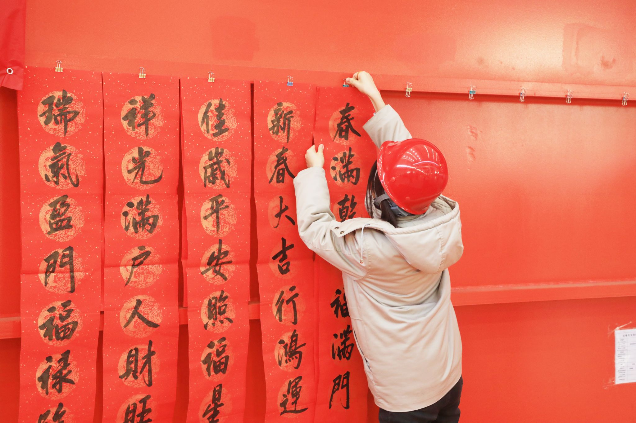 這些“?!睔鉂M滿的春聯(lián),充滿了對(duì)企業(yè)發(fā)展的美好期盼和對(duì)未來生活的無限憧憬,透著十足的年味,得到了職工們的熱烈稱贊。不一會(huì)兒功夫,桌上、地上就鋪滿了春聯(lián)和“福”字,好似一片喜慶的“紅地毯”。“老師們現(xiàn)場(chǎng)寫春聯(lián),與買春聯(lián)的感覺完全不同,這樣充滿儀式感的活動(dòng),讓大家的心里都暖融融的,來年要更加努力在自己的工作崗位上發(fā)光發(fā)熱!”職工們臉上洋溢著燦爛的笑容,開心無比。在現(xiàn)場(chǎng),書法老師們共書寫春聯(lián)1000余副,并將這些蘊(yùn)含著辛勤汗水、美好祝愿的春聯(lián)送到職工手中,大家紛紛拿起手機(jī)拍照留念,記錄下這幸福的瞬間。