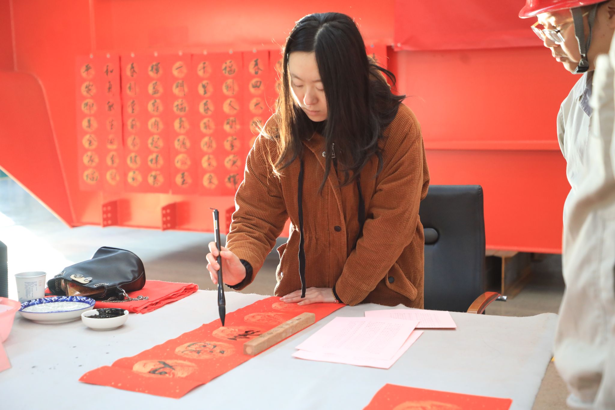 “乘風(fēng)破浪,久久為功,再鑄太重新輝煌;盛世龍騰,挑戰(zhàn)自我,振興崛起太重夢(mèng)”“一帆風(fēng)順年年好,萬事如意步步高”……鋪紙、蘸墨、起筆,大家揮毫潑墨、激情書寫,在紅彤彤的喜慶與希冀中,將用心挑選的文字用藝術(shù)的形式展現(xiàn)出來,一幅幅遒勁有力、清爽灑脫的新春祝福,帶著清新的墨香躍然紙上。