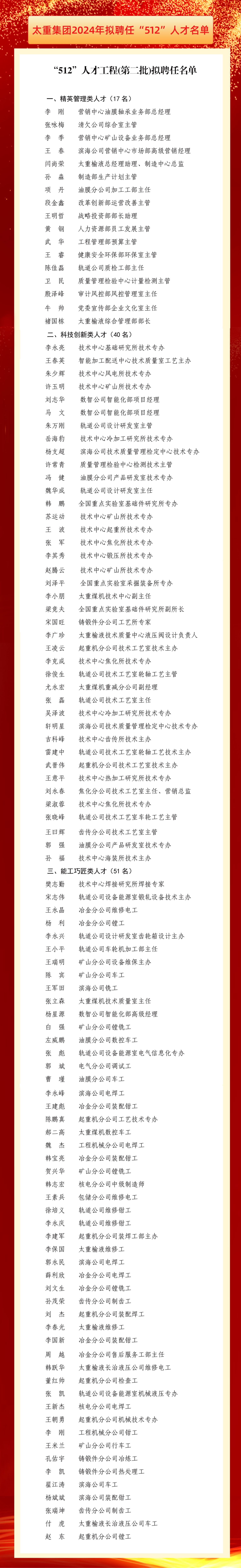 近日,公司“512”人才工程(第二批)聘任名單重磅出爐!此次聘任108人,其中包括17名精英管理人才、40名科技創(chuàng)新人才、51名能工巧匠人才,均為公司各崗位政治上靠得住、品行上能服眾、關(guān)鍵時(shí)起作用的“先鋒干將”。