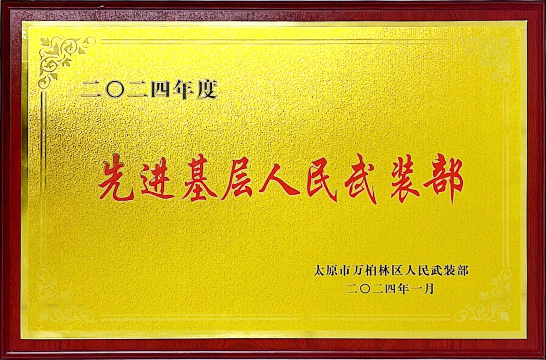近日,公司武保部被萬柏林區(qū)人武部評為2024年度“先進(jìn)基層人民武裝部”稱號。郭鵬程被評為“先進(jìn)專職人民武裝干部”,王智、盧嘉被評為“優(yōu)秀民兵”,楊中平被評為“征兵工作先進(jìn)個人”。