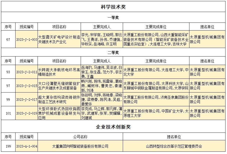 近日,山西省人民政府印發(fā)《關于2023年度山西省科學技術獎勵的決定》,對促進山西省科學技術進步和經濟社會發(fā)展作出突出貢獻的科學技術人員和組織給予獎勵。太重集團5項成果喜獲山西省科學技術獎。太重向明榮獲企業(yè)技術創(chuàng)新獎。