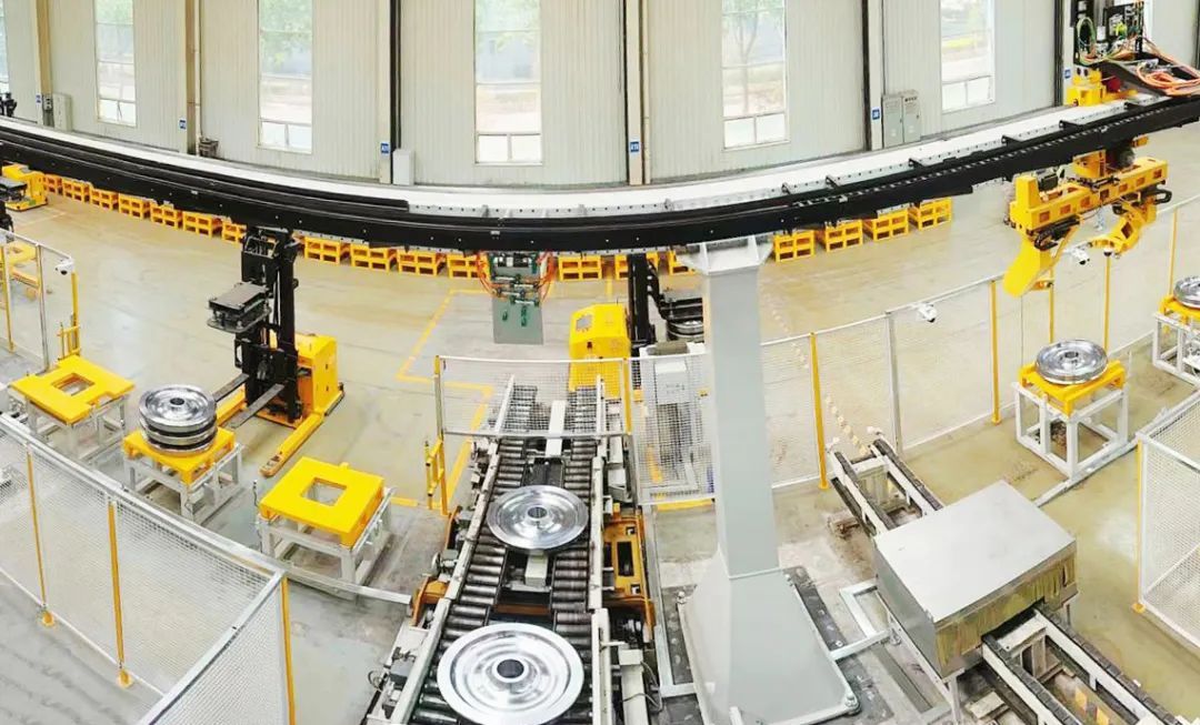 軌道車輪廠二線,一片片車輪搭載著5G網(wǎng)絡(luò)和AGV小車完成機(jī)加工和檢測工序,實現(xiàn)了毛坯到精品的快速蛻變。