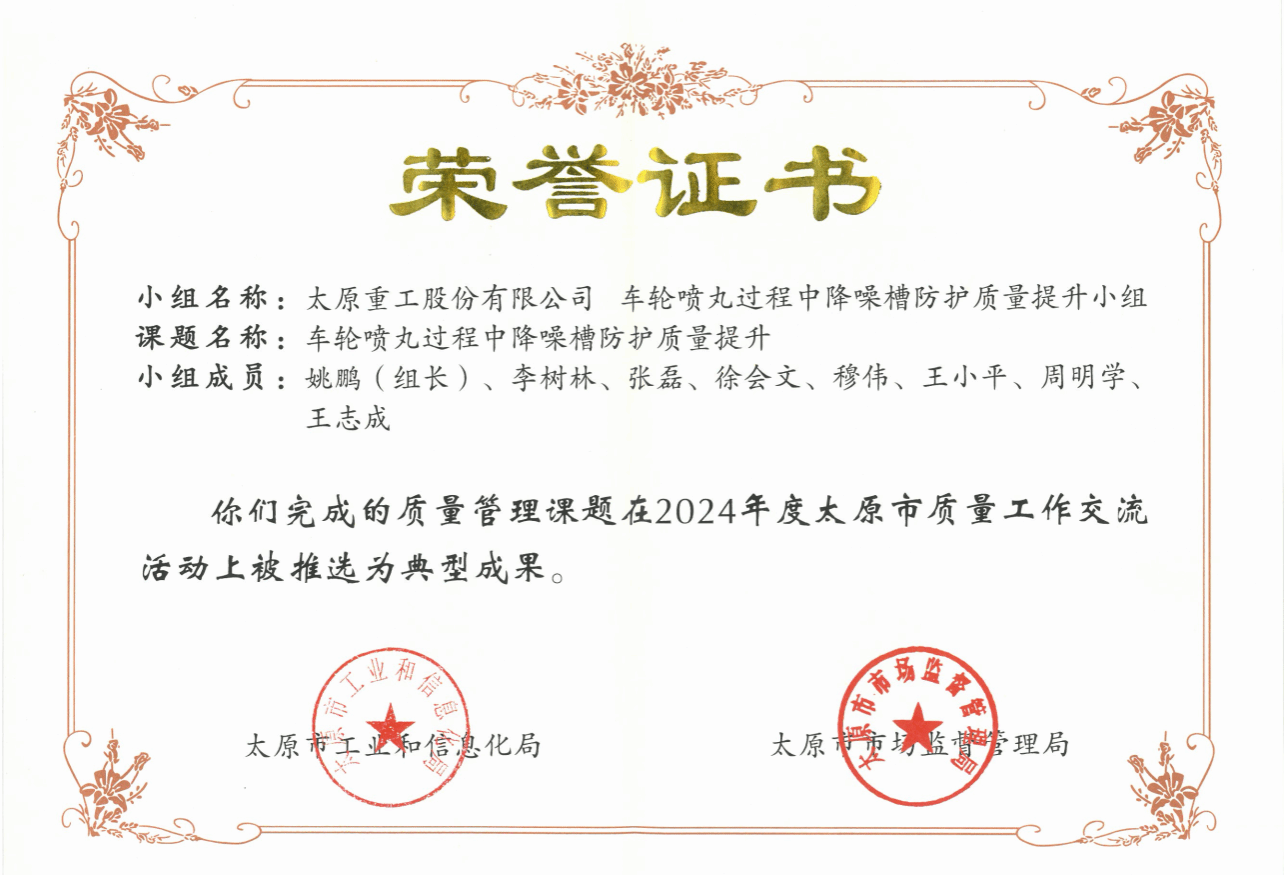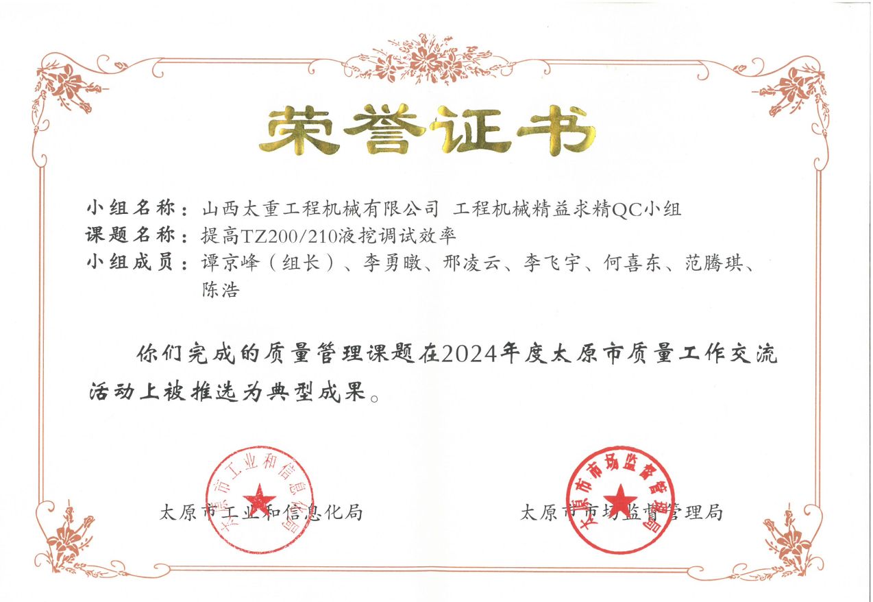 QC活動的開展,不僅是激發(fā)項目一線創(chuàng)新活力的有效途徑,也是推動全員參與質(zhì)量改進的重要手段。此次獲獎不僅是對公司在質(zhì)量管理領(lǐng)域持續(xù)創(chuàng)新的高度認可,也是對公司長期以來人才培養(yǎng)與體系構(gòu)建取得成效的見證。近年來,公司高度重視質(zhì)量管理工作,緊緊圍繞產(chǎn)品質(zhì)量提升,持續(xù)擴展QC活動領(lǐng)域,推動公司質(zhì)量管理水平不斷提高。系統(tǒng)組織實施六西格瑪、PDCA、QC等先進工具專題培訓,并融入質(zhì)量問題的分析處理,確保產(chǎn)品改進取得實效;依托QMS信息化建設(shè),從基礎(chǔ)憑證、工作臺賬、指標管理到統(tǒng)計報表,全面建立“日填報、周統(tǒng)計、月匯總”的質(zhì)量指標統(tǒng)計和反饋體系……公司依托先進工具和信息系統(tǒng)持續(xù)推進全過程質(zhì)量管控,全力打造太重標準、太重質(zhì)量、太重品牌。下一步,公司將繼續(xù)推進六西格瑪、QC等項目成果建設(shè),爭取挖掘更多優(yōu)質(zhì)項目,為發(fā)展新質(zhì)生產(chǎn)力貢獻更多“太重精品”。