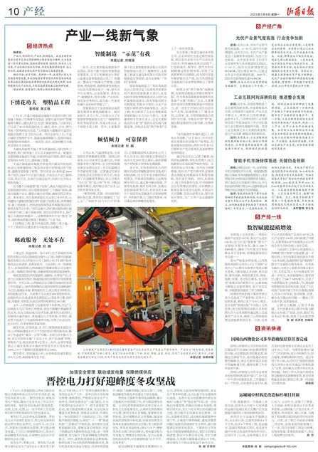 1月9日,山西日報刊發(fā)《產(chǎn)業(yè)一線新氣象》文章,報道太重集團深耕智能制造,厚植創(chuàng)新發(fā)展,為推動全省“兩個轉(zhuǎn)型”交上了優(yōu)異答卷。深化改革以來,公司把創(chuàng)新作為引領(lǐng)發(fā)展的第一動力,大力發(fā)展智能設(shè)計、智能制造、智能產(chǎn)品和智能服務(wù),以市場為導(dǎo)向,以自主研發(fā)為基礎(chǔ),發(fā)揮公司在科技創(chuàng)新和機械制造方面的優(yōu)勢,通過高技術(shù)、高質(zhì)量獲取競爭優(yōu)勢,為用戶提供智能、安全、高效的產(chǎn)品。公司作為我省“雙鏈主”企業(yè),加強協(xié)同創(chuàng)新,推動行業(yè)發(fā)展,打造具有國際一流競爭力的現(xiàn)代智能裝備制造企業(yè),為推動中國“智”造、建設(shè)制造強國作貢獻。下面對太重相關(guān)內(nèi)容進行轉(zhuǎn)載。