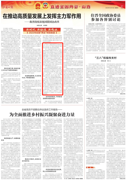 今日,山西日?qǐng)?bào)【新時(shí)代 新征程 新偉業(yè)——2023年全國(guó)兩會(huì)特別報(bào)道】專欄,刊發(fā)了《在推動(dòng)高質(zhì)量發(fā)展上發(fā)揮主力軍作用 ——我省持續(xù)深化國(guó)資國(guó)企改革》文章,深入報(bào)道了太重集團(tuán)在推動(dòng)我省高質(zhì)量發(fā)展中的突出成效 。近年來,太重集團(tuán)苦練內(nèi)功、提質(zhì)增效,扎實(shí)推進(jìn)國(guó)企改革,在智能制造、創(chuàng)新驅(qū)動(dòng)、人才體制機(jī)制改革等方面亮點(diǎn)頻出、成效顯著,成為推動(dòng)全省高質(zhì)量發(fā)展的重要力量。