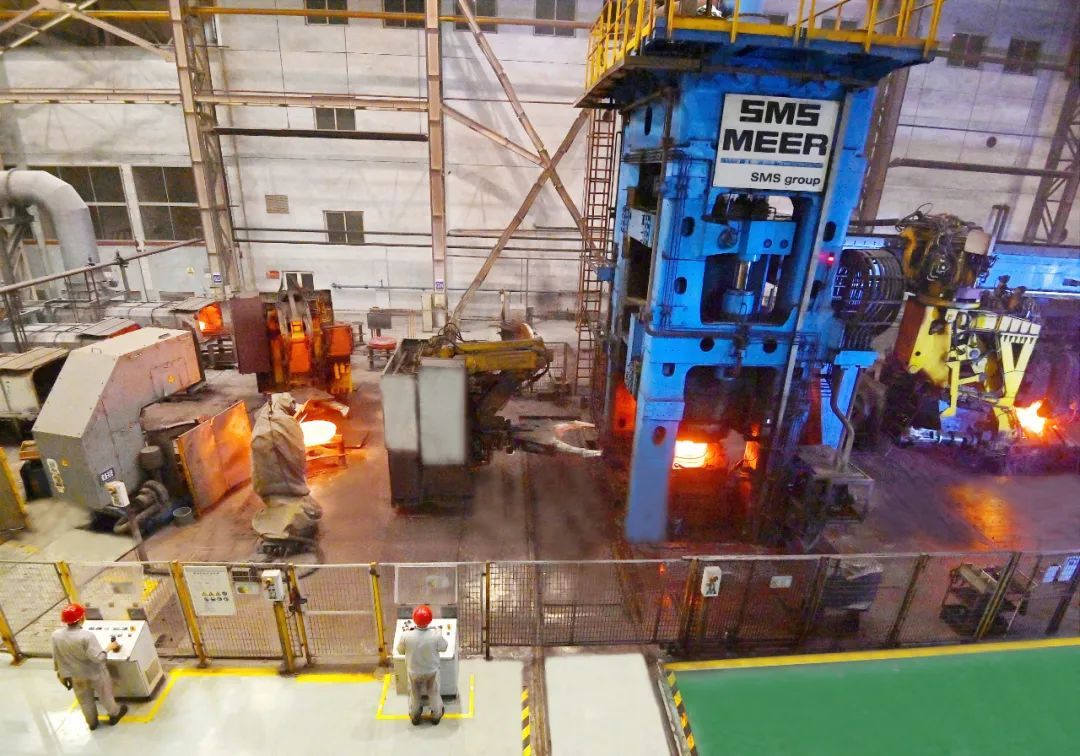 車輪廠二線鍛軋工部正在進(jìn)行緊張的車輪鍛造任務(wù),設(shè)備運(yùn)維人員為準(zhǔn)時(shí)制生產(chǎn)保駕護(hù)航