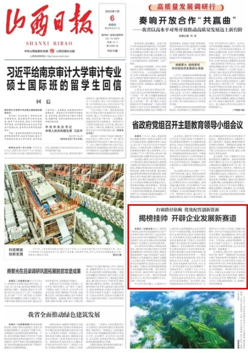 今天,山西日報頭版刊發(fā)《揭榜掛帥 開辟企業(yè)發(fā)展新賽道》文章,聚焦太重結(jié)合技術(shù)需求,通過“揭榜掛帥”項目,與高校、科研院所科研方向、科研成果精準對接,堅持以科技創(chuàng)新賦能高質(zhì)量發(fā)展,不斷完善技術(shù)研發(fā)體系,力爭在山西省轉(zhuǎn)型發(fā)展中更好發(fā)揮龍頭帶動作用。